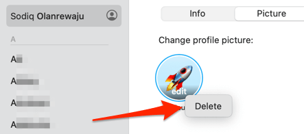 - Haga clic con el botón derecho o haga clic con el botón derecho en el icono de la imagen de perfil y seleccione Borrar.