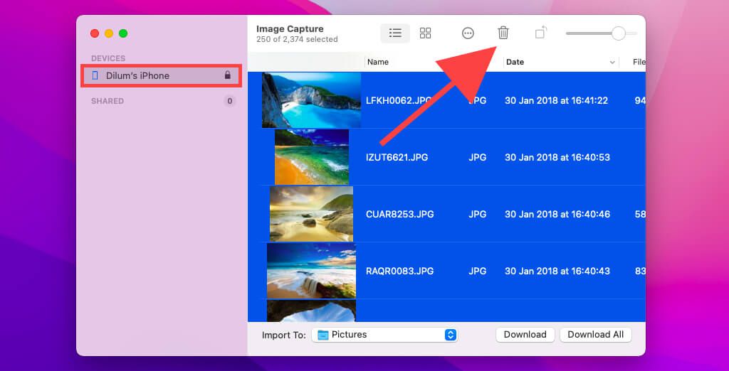 Si no usa Fotos de iCloud, puede usar la herramienta de captura de imágenes de Mac para eliminar muchas fotos a la vez.