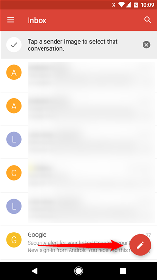 Abra Gmail y abra un nuevo correo electrónico tocando el ícono de lápiz en la parte inferior. A menos, por supuesto, que intente agregar el archivo adjunto a una respuesta; en este caso, simplemente toque el botón «responder».