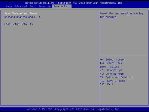 Vaya a la pestaña Guardar y salir, seleccione [Save Changes and Reset] y salga del menú de configuración del BIOS.