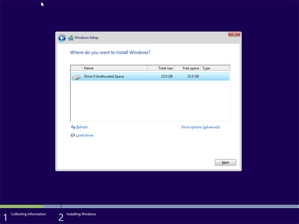 2. Reinicie su PC. Su computadora portátil se iniciará desde el DVD de Windows 8.1 o desde la unidad flash USB. Presione cualquier tecla cuando se le solicite el mensaje «Presione cualquier tecla para iniciar desde CD o DVD…».