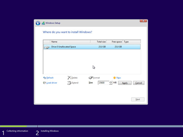 11. Haga clic en [Novo] y decida un tamaño de partición adecuado para la partición.