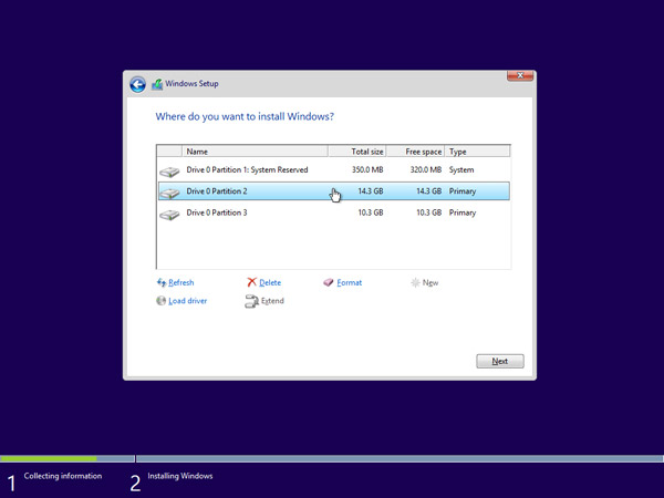 15. Seleccione la partición en la que desea instalar Windows y presione [Avançar] .
