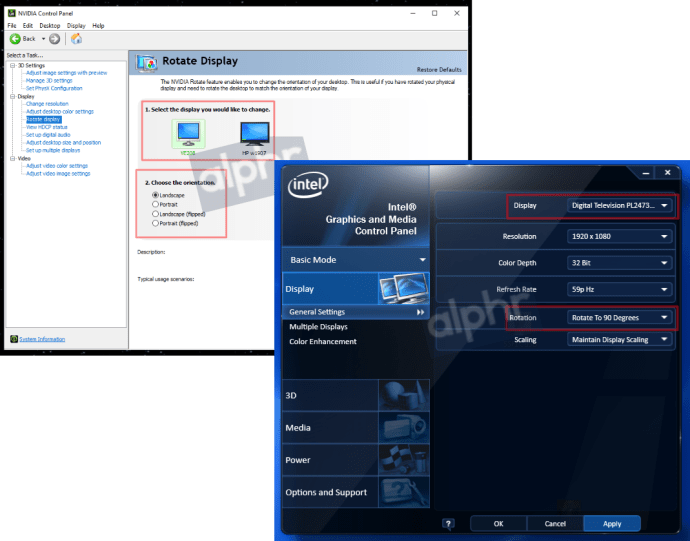 - Cómo rotar la pantalla de una computadora portátil o PC usando el panel de control AMD/Intel/NVIDIA