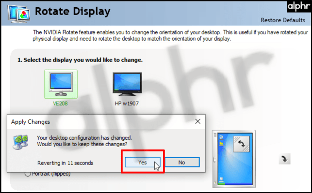 - Ajuste la rotación como desee. Algunos paneles de control lo cambian automáticamente, mientras que otros requieren que haga clic «Ahorrar» o «Aplicar».