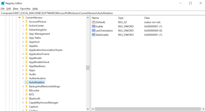 - Desde aquí, sigue el camino: HKEY_LOCAL_MACHINE/SOFTWARE/Microsoft/Windows/CurrentVersion/AutoRotación.