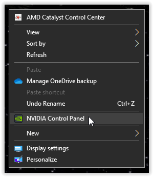- Haga clic con el botón derecho en el escritorio de Windows, seleccione el Panel de control de su tarjeta gráfica o haga clic con el botón derecho en el icono de la bandeja del sistema de la GPU.
