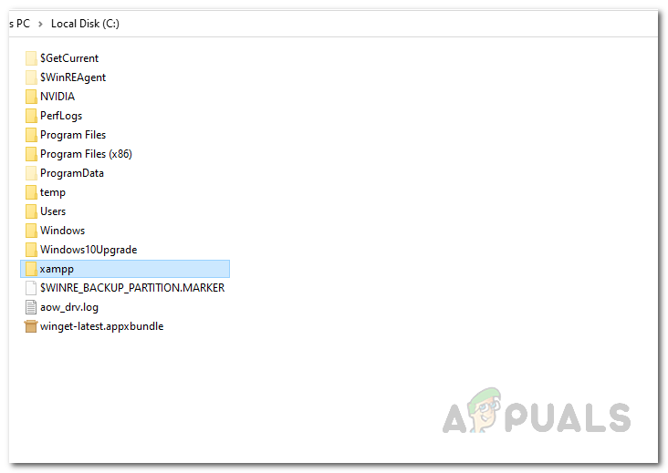 - Después de cerrar el servidor web, navegue a la carpeta donde está instalado xampp. Por defecto encontrarás xampp en «C: champú».