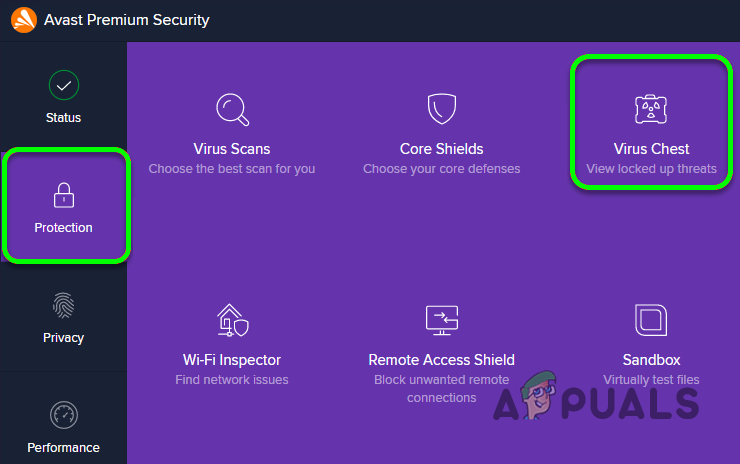 - lanzar el antivirus avast y ve a tu Proteccion pestaña.