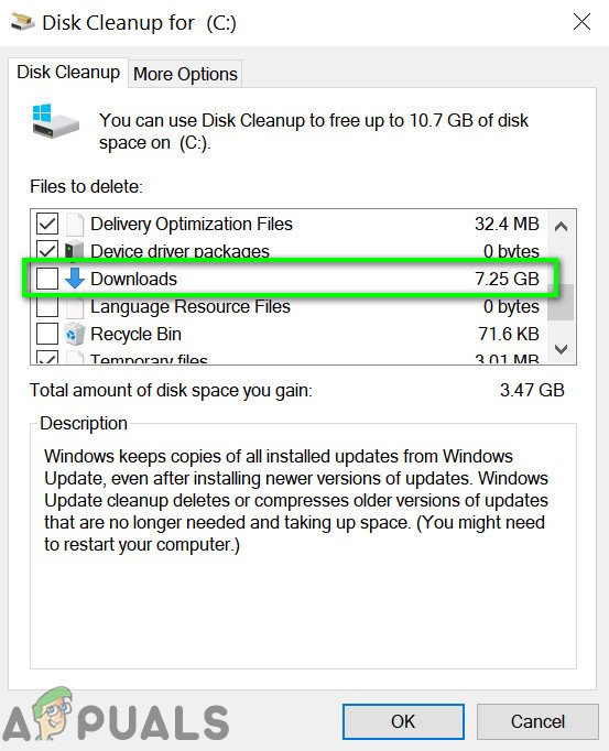 - Ahora deje que se complete el escaneo de limpieza y luego marque todos las categorías excepto Descargas.