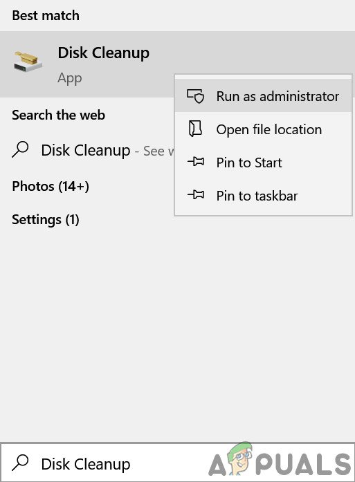 - Hacer clic ventanasmodelo: Limpieza de disco, botón derecho del ratón en él, y seleccione Ejecutar como administrador.